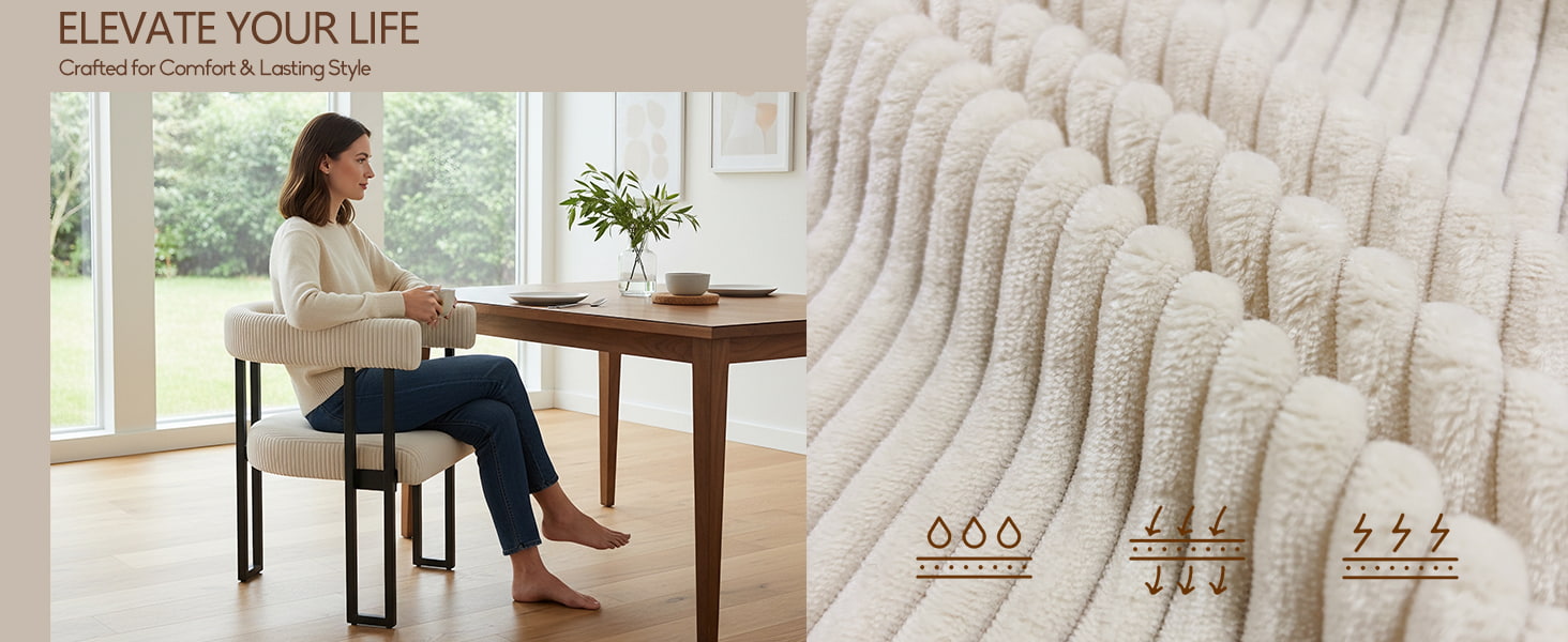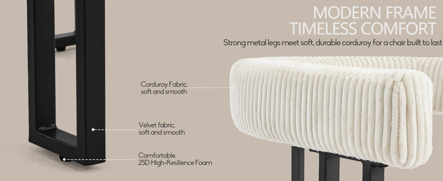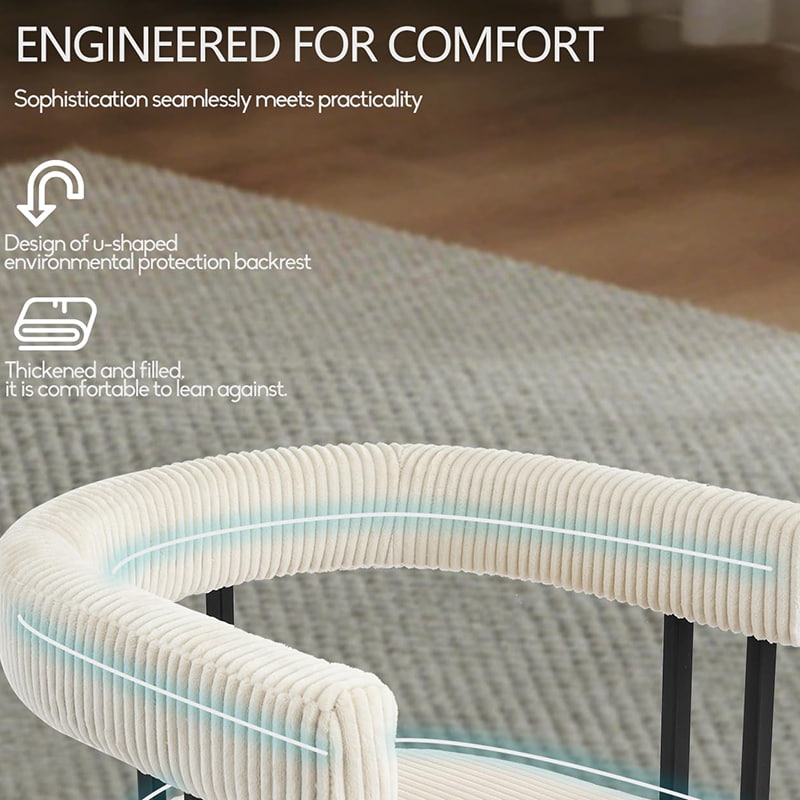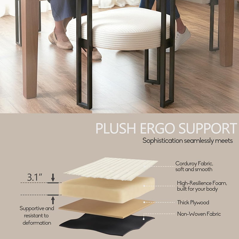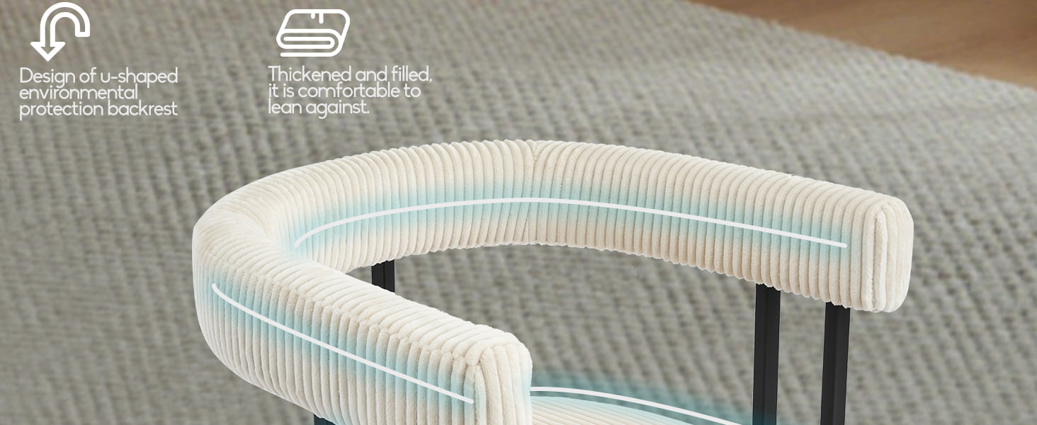 المقعد محشو بإسفنج عالي المرونة يحافظ على شكله بمرور الوقت، ويوفر دعمًا موثوقًا سواء تم استخدامه على طاولة الطعام أو طاولة الزينة أو مكتب المكتب المنزلي. يوفر مسند الظهر المصمم بعناية على شكل حرف U دعمًا مريحًا للخصر والظهر، مما يساعد على تقليل التعب أثناء الجلوس لفترات طويلة.