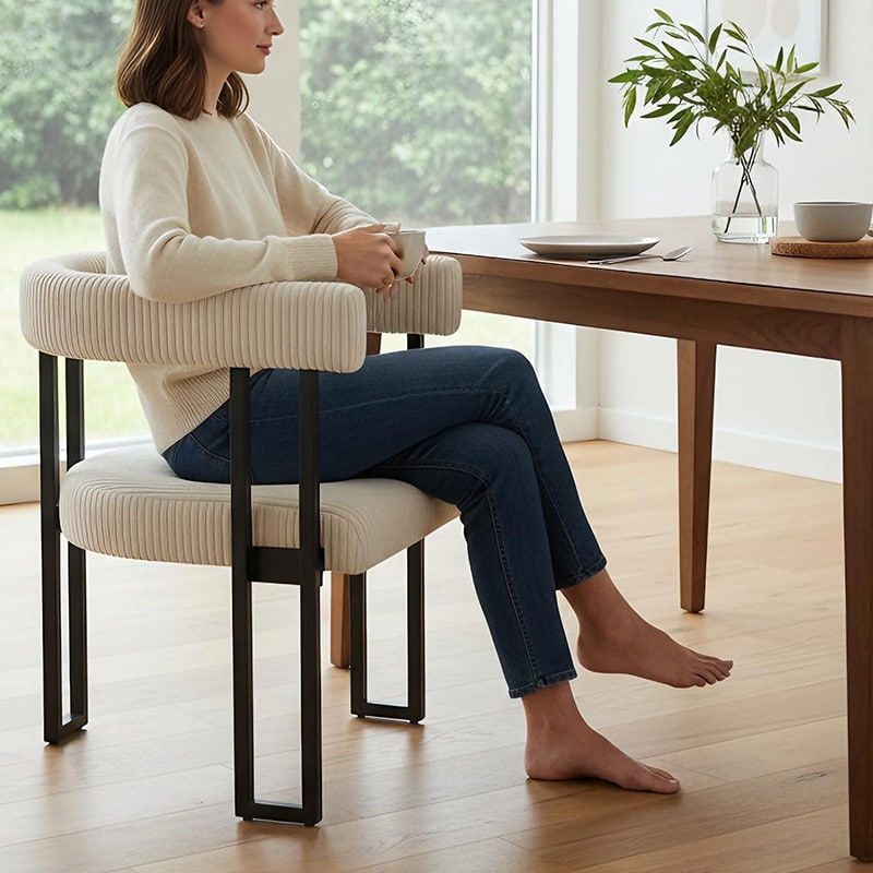 يتعلم أكثريجمع كرسي الطعام هذا بين البساطة العصرية والراحة اليومية، مما يجعله حلاً متعدد الاستخدامات للجلوس للمنازل المعاصرة. يوفر الكرسي المنجد بنسيج سروال قصير ناعم لمسة مريحة وصديقة للبشرة بينما يظل متينًا بدرجة كافية للاستخدام اليومي لتناول الطعام.