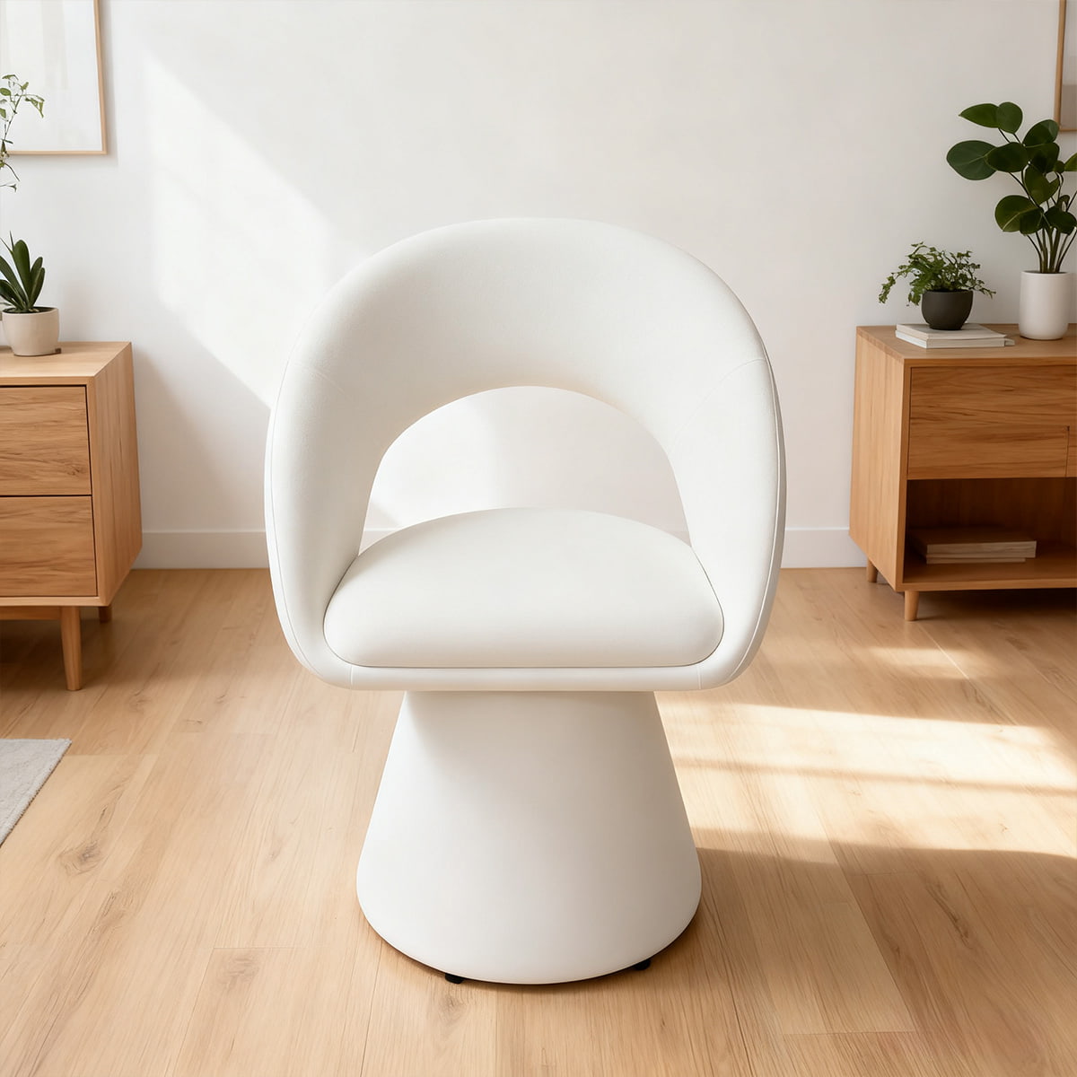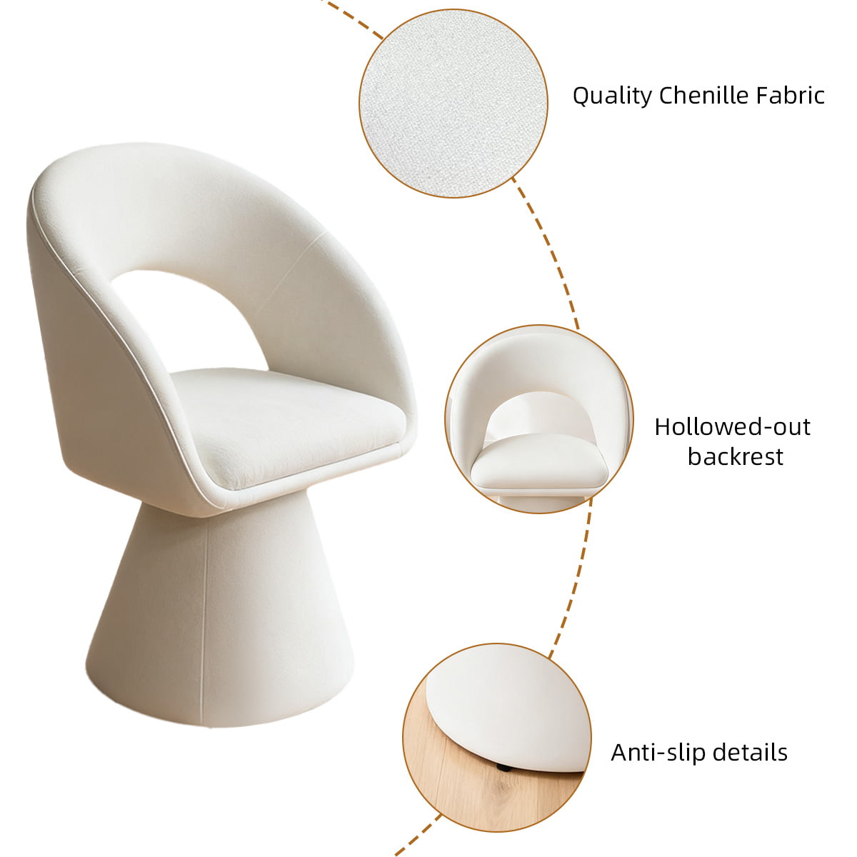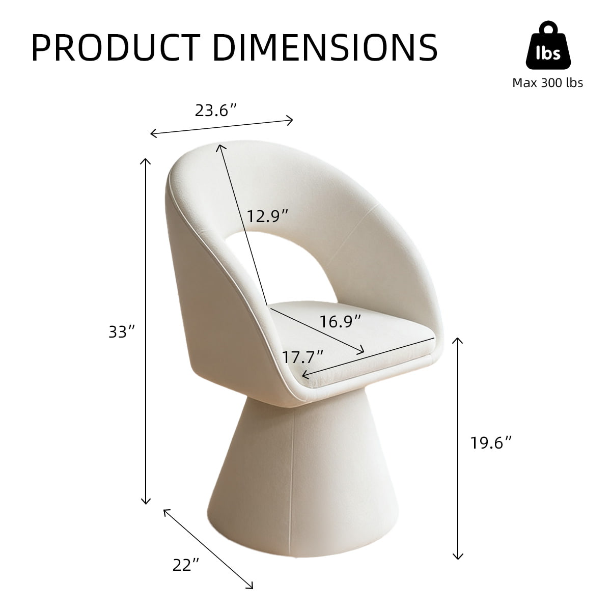 كرسي دوار ذو تصميم منحني باللون الأبيض الكريمي ذو اللون الأبيض المخملي - كرسي منجد لتناول الطعام والترفيه يدور بزاوية 360 درجة مع مسند ظهر مجوف