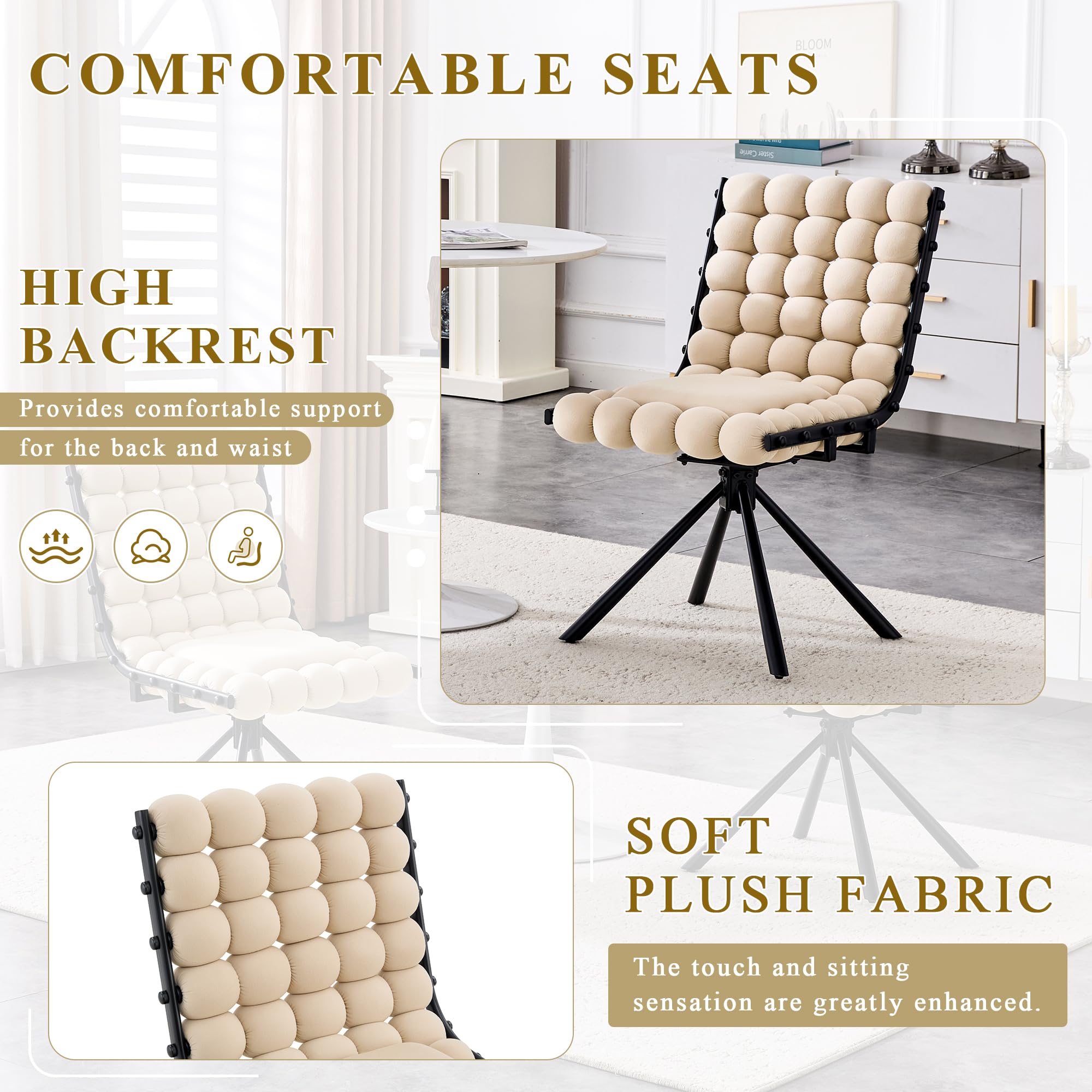 كرسي طعام دوار مخملي مع وسادة خلفية فقاعية، كرسي منجد بأرجل معدنية (بدون عجلات)