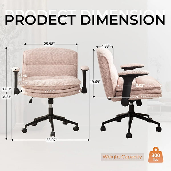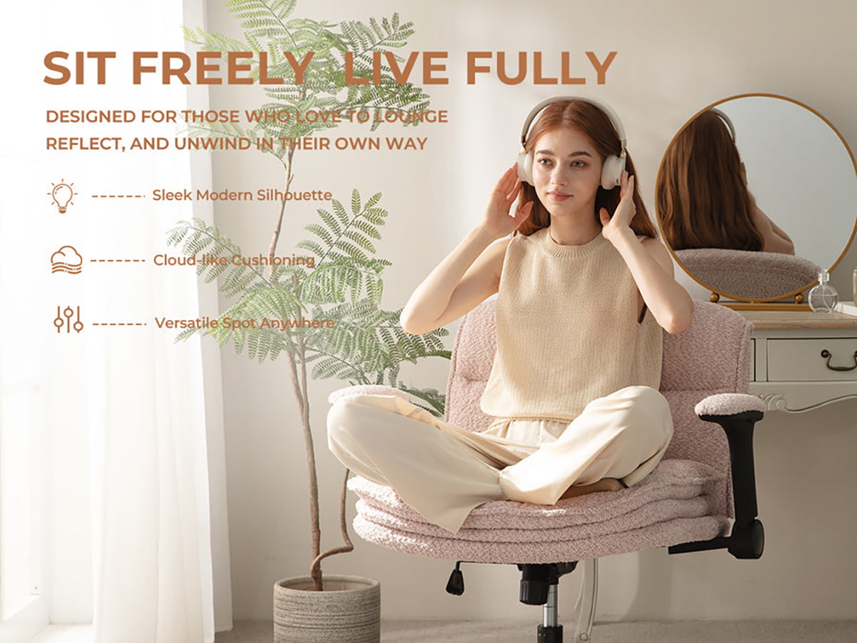 تعمل مساند الذراعين القابلة للطي على زيادة المرونة - يمكنك الجلوس بشكل متقاطع أو جانبي أو منحني أو منتصب بسهولة. تم تصميم هذا الكرسي لتوفير الراحة والحركة والأناقة، وهو مناسب تمامًا للمكاتب المنزلية وغرف النوم والمساحات الإبداعية.
