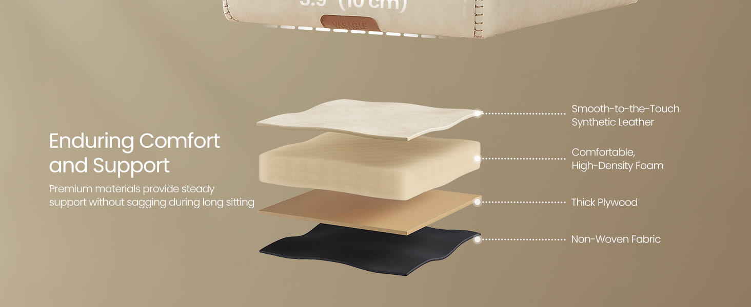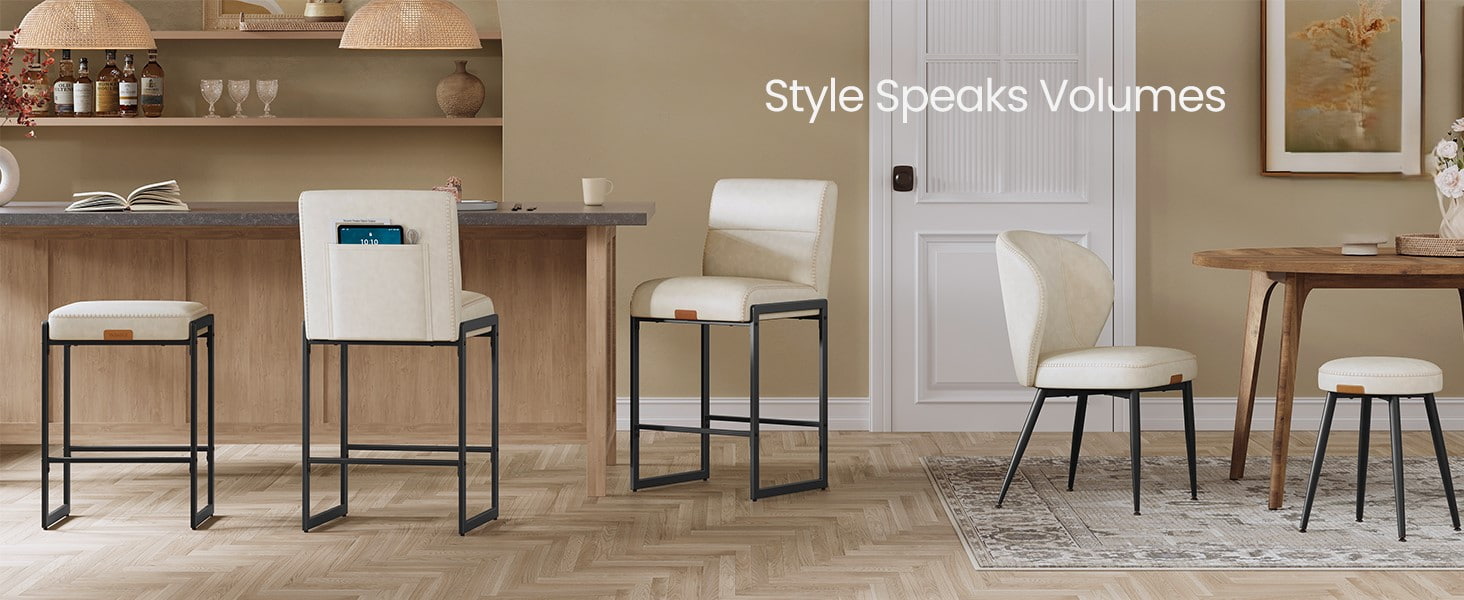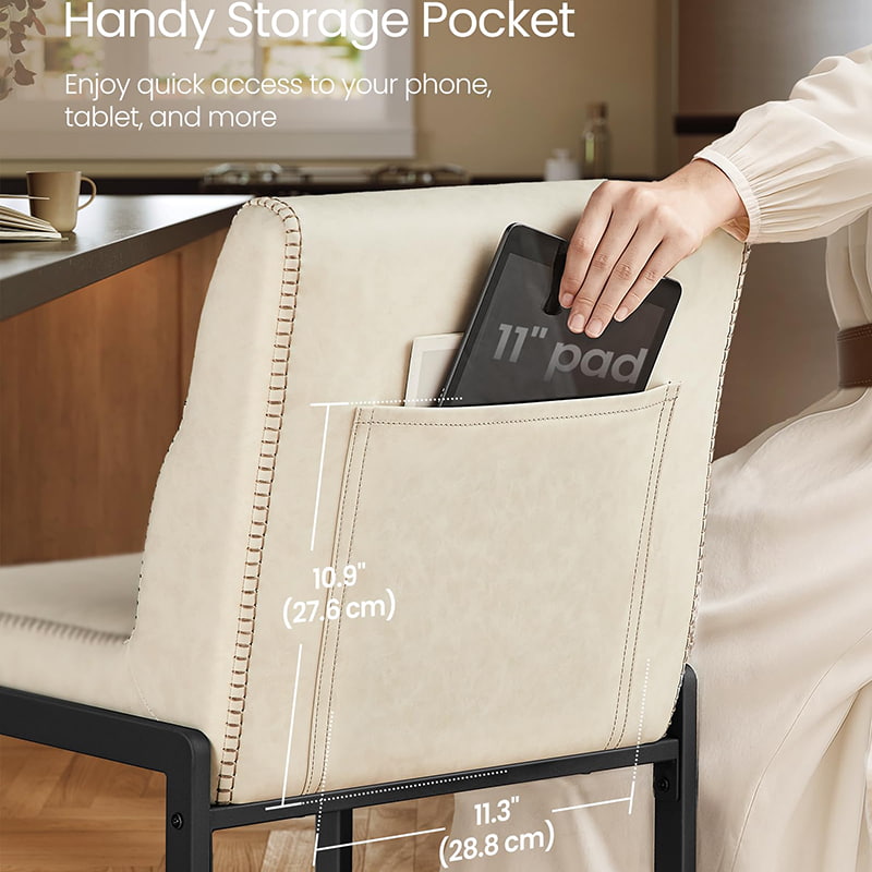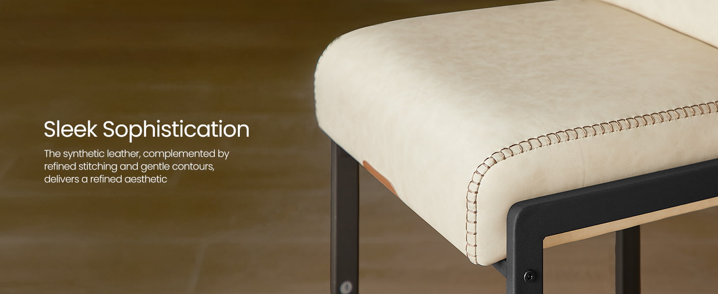 تم تفصيل سطح الجلد الصناعي الناعم بخياطة دقيقة، مما يوفر مظهرًا مصنوعًا مع الحفاظ على سهولة الصيانة - وهو مثالي للأسر المزدحمة والإعدادات التجارية الخفيفة. تساعد حافة المقعد المنحنية بلطف على تقليل ضغط الساق، بينما يضيف الجيب الخلفي المدمج مساحة تخزين مريحة للهواتف أو الأجهزة اللوحية أو الضروريات الصغيرة. مدعومًا بإطار معدني قوي مع أقدام مخفية قابلة للتعديل، يضمن هذا المقعد المرتفع الثبات على أسطح الأرضيات المختلفة ويتكيف بسهولة مع المطابخ الحديثة أو أماكن تناول الطعام أو مناطق الترفيه غير الرسمية.