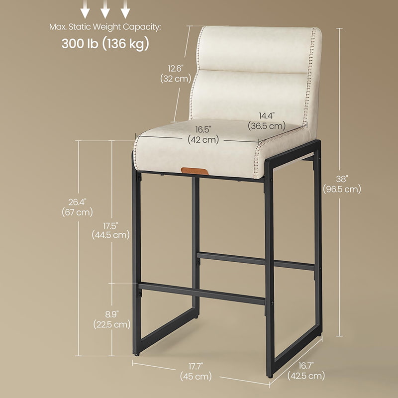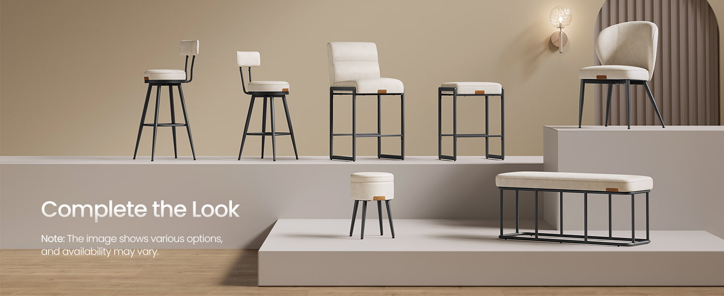 تم تصميم مقاعد البار الحديثة في منتصف القرن لطاولات المطبخ وجزر تناول الطعام، وتتميز هذه الكراسي ذات الارتفاع الأبيض الكريمي بمفروشات متينة من الجلد الصناعي مع خياطة راقية وإطار معدني معماري نظيف. يوفر مسند الظهر المريح المقسم بزاوية 103 درجة، والمقعد المبطن بسمك 3.9 بوصة، والحافة الأمامية المنحنية راحة دائمة للجلوس لفترات طويلة، مما يجعلها مناسبة لكل من المطابخ السكنية والبيئات التجارية الخفيفة مثل المقاهي أو صالات العرض.