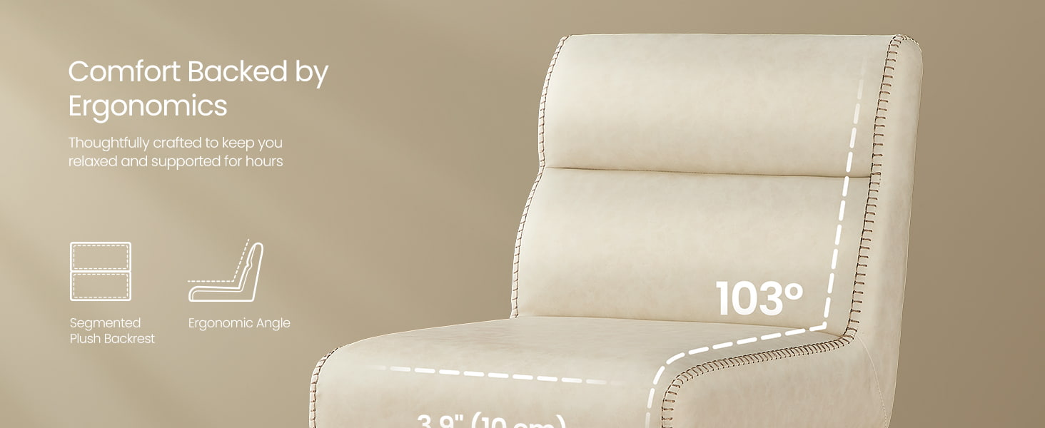 ● مسند ظهر مقسم إلى 103 درجات لتوفير دعم متوازن لمنطقة أسفل الظهر