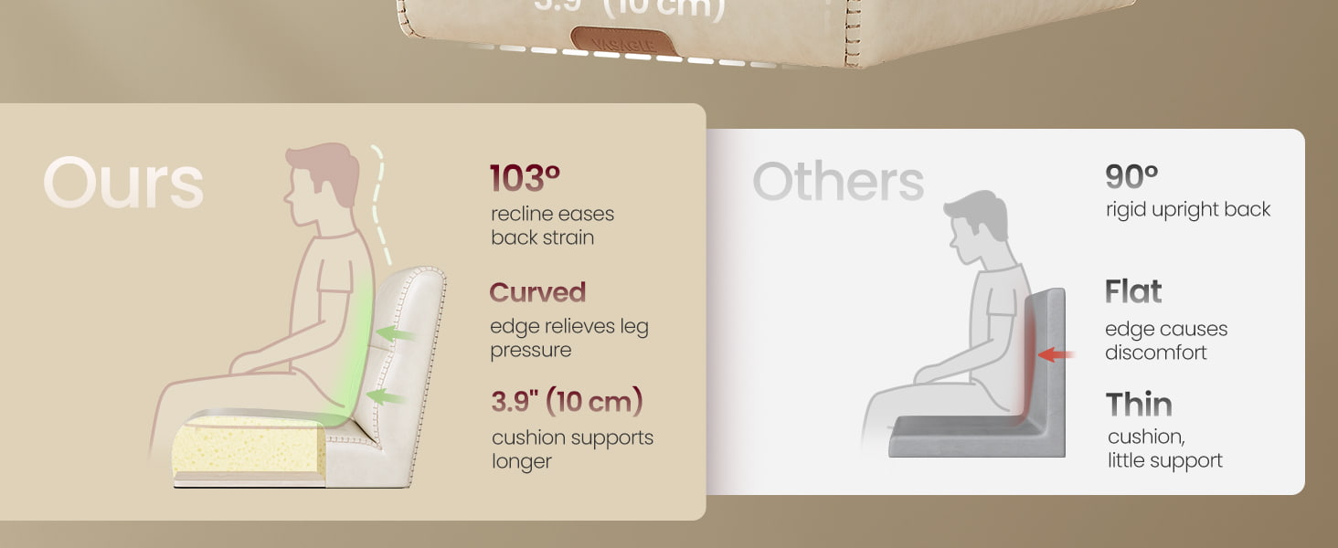 ● حافة المقعد منحنية لتقليل الضغط على الساق أثناء الجلوس لفترات طويلة